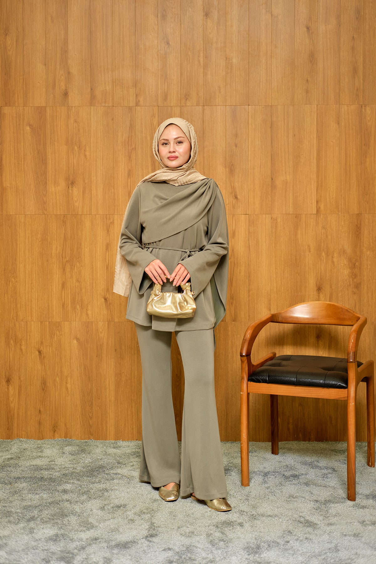 Önü Şallı Modal Takım Küf Yeşil