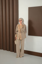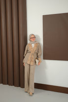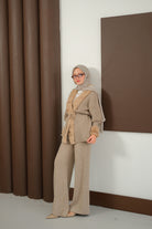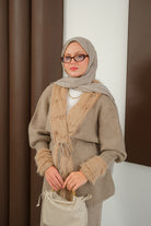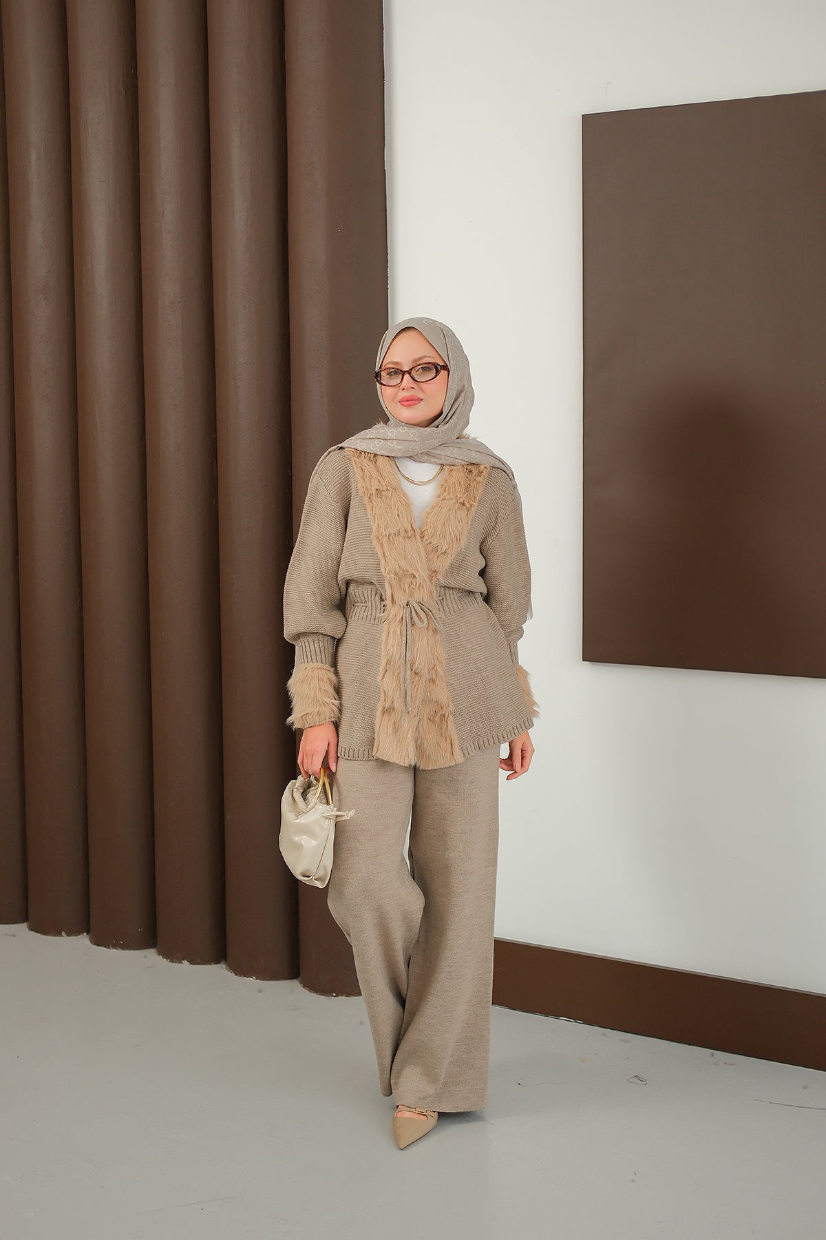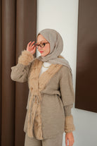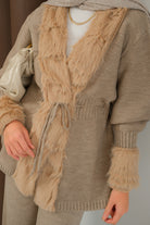 Peluş Detay Triko Takım Vizon