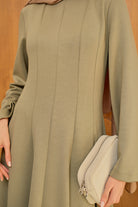 Pile Dikiş Detay Elbise Fıstık Yeşil