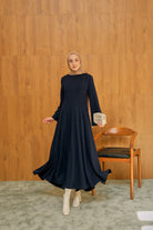 Pile Dikiş Detay Elbise Lacivert