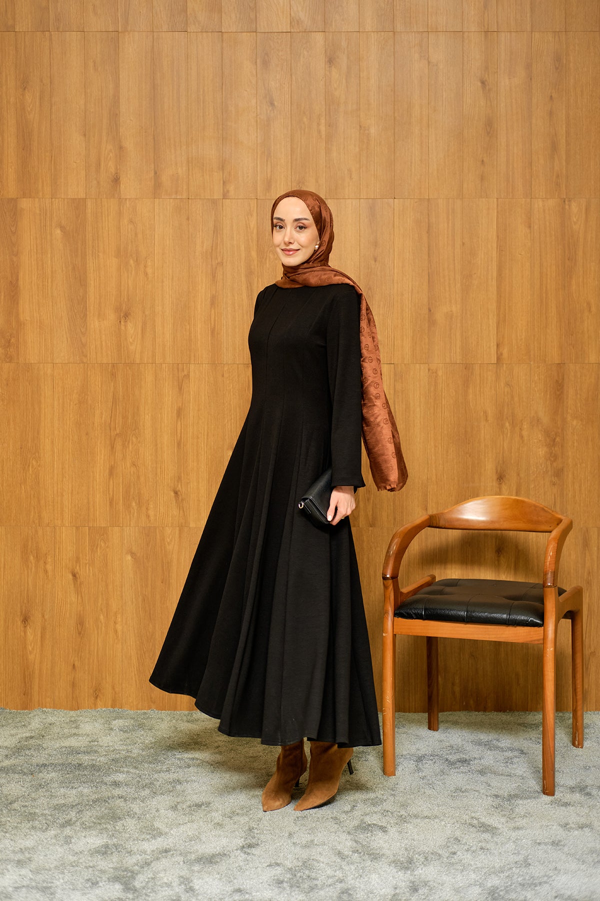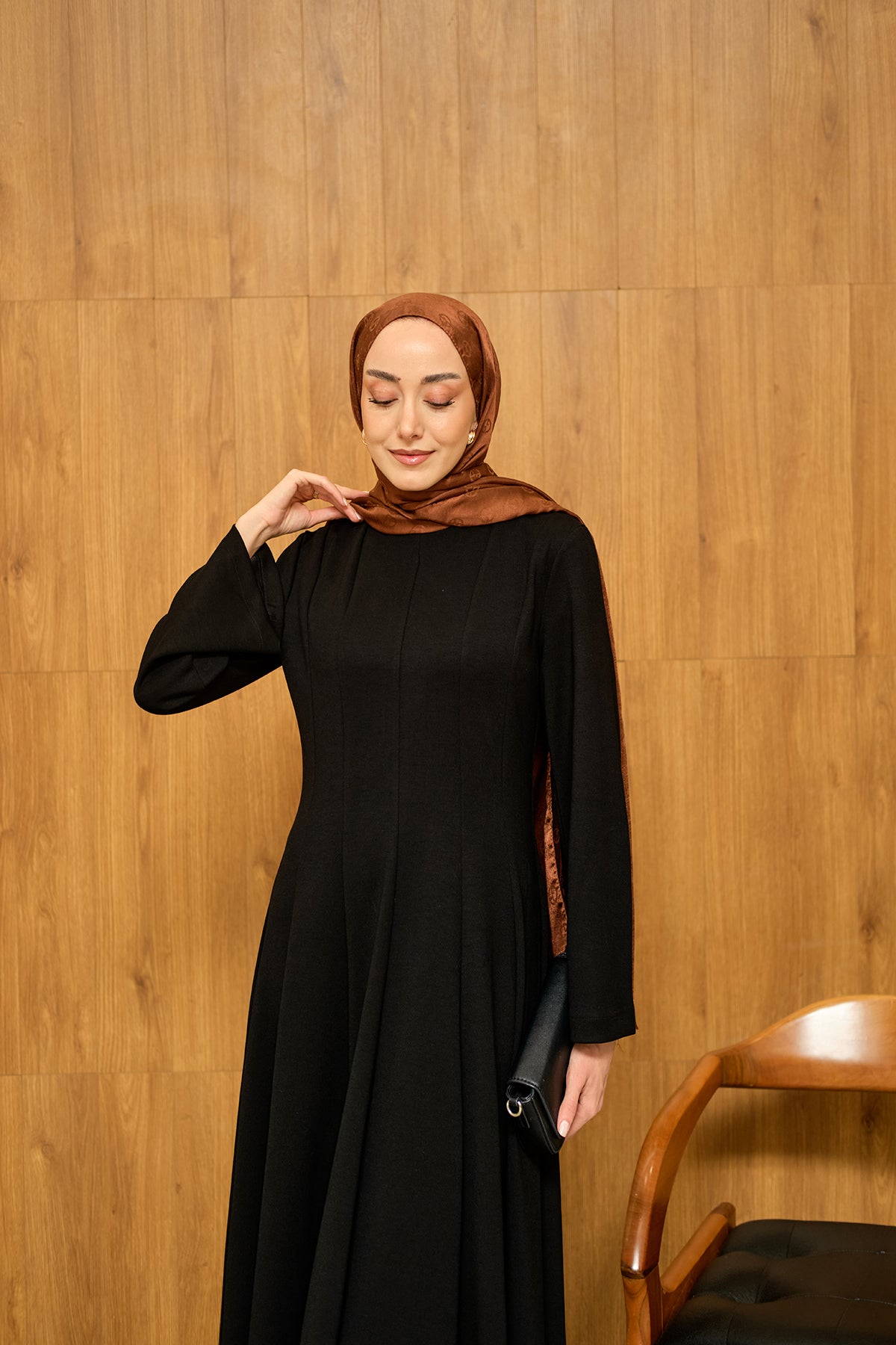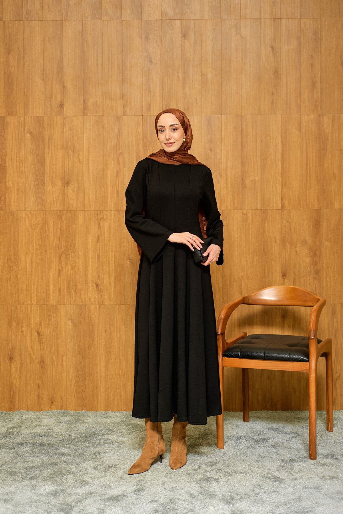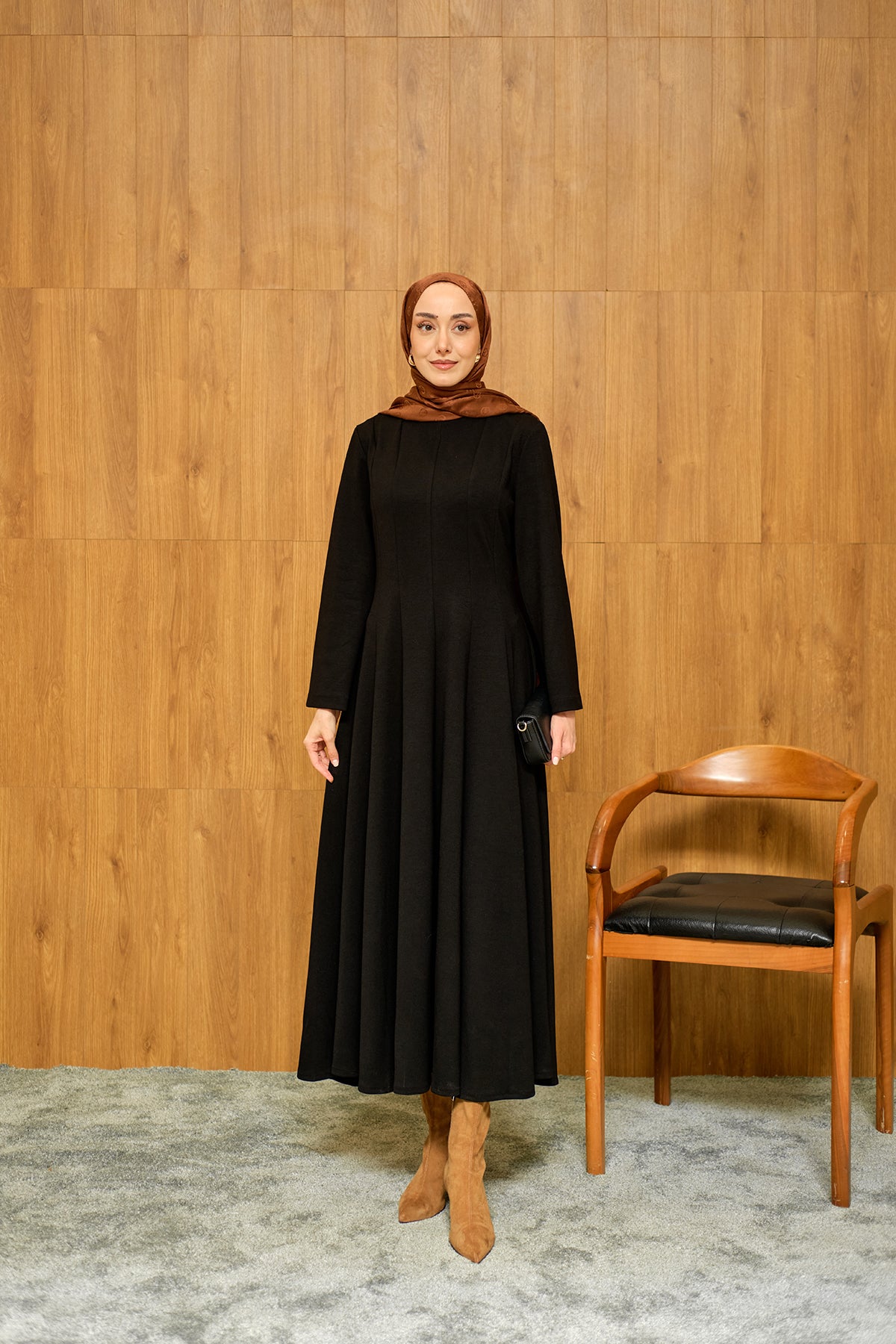 Pile Dikiş Detay Elbise Siyah
