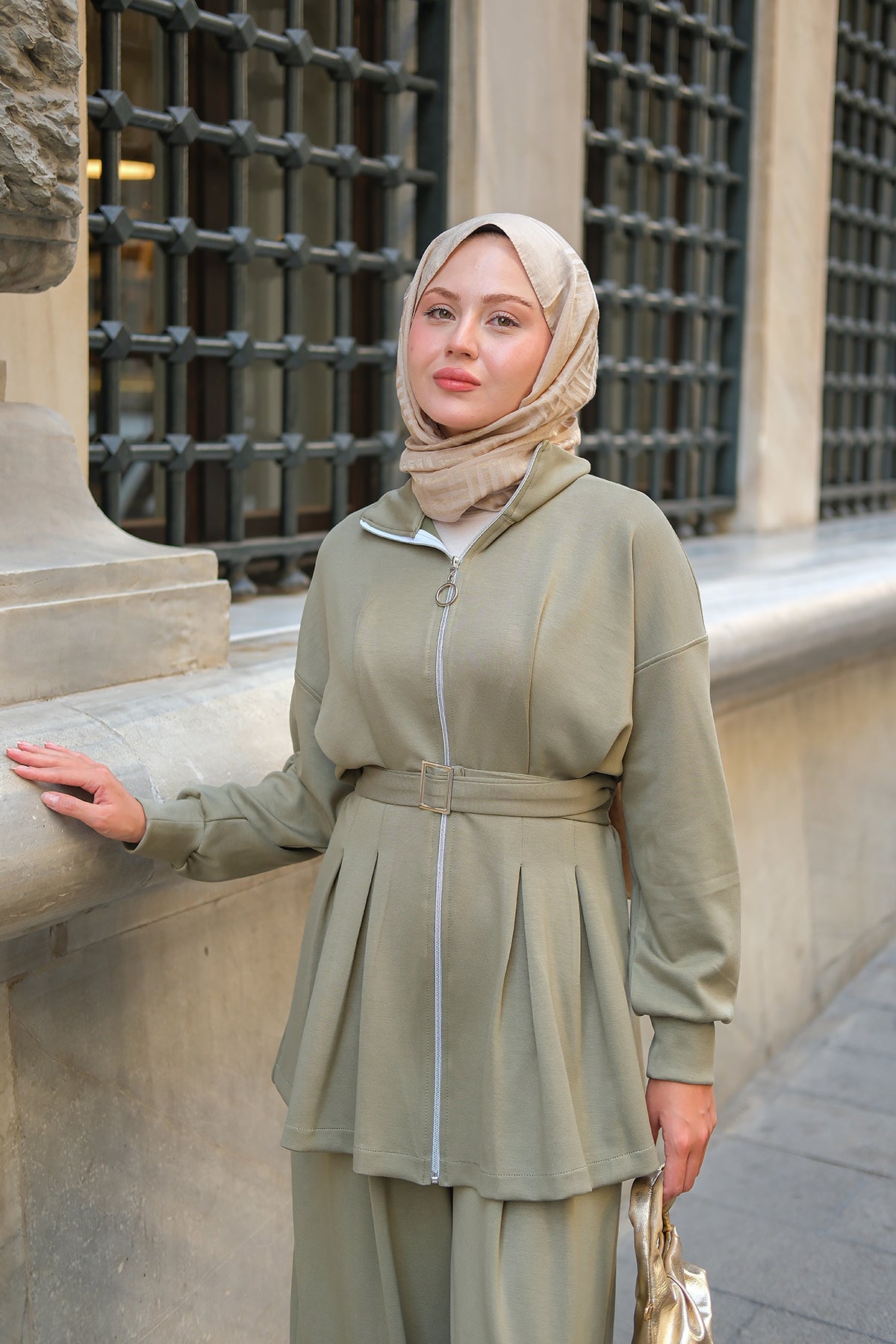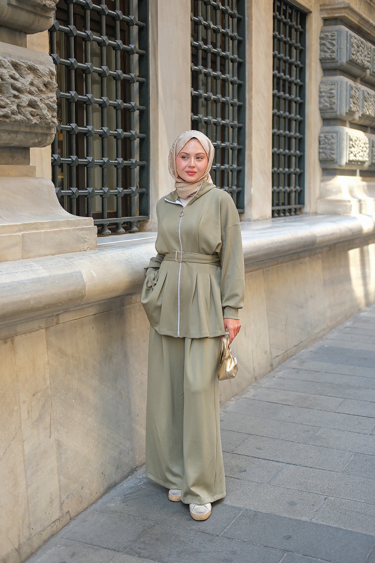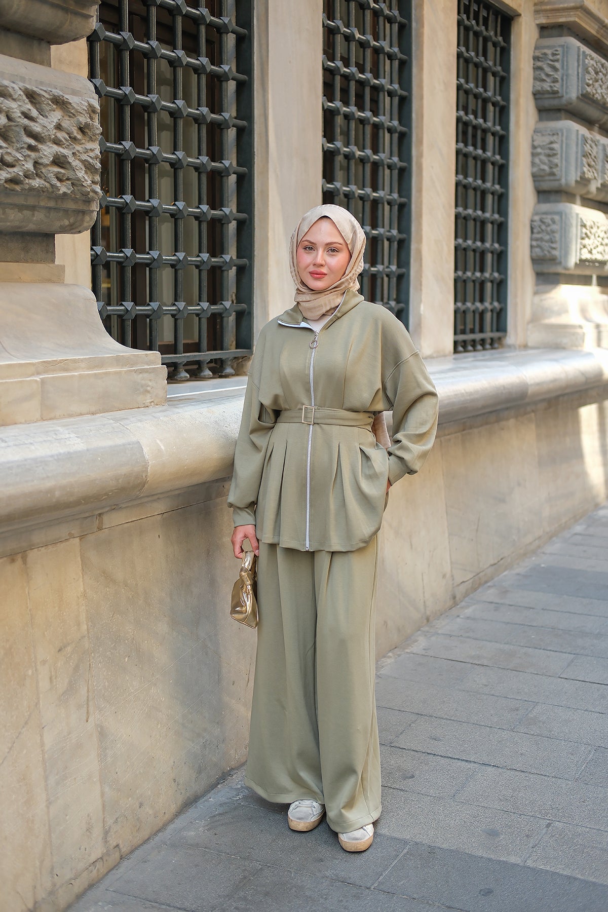 Pleated Buckle Detail Set - Pistachio Green