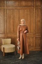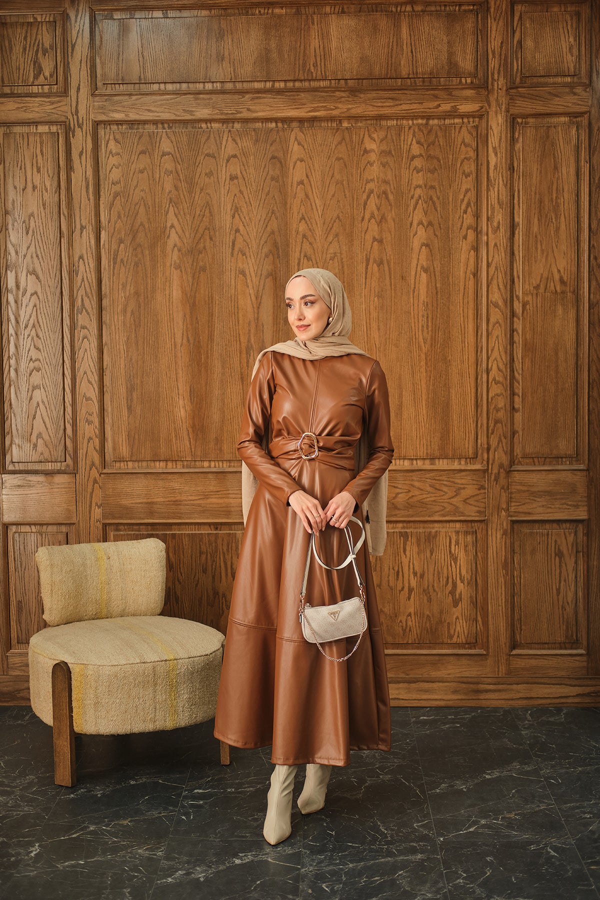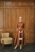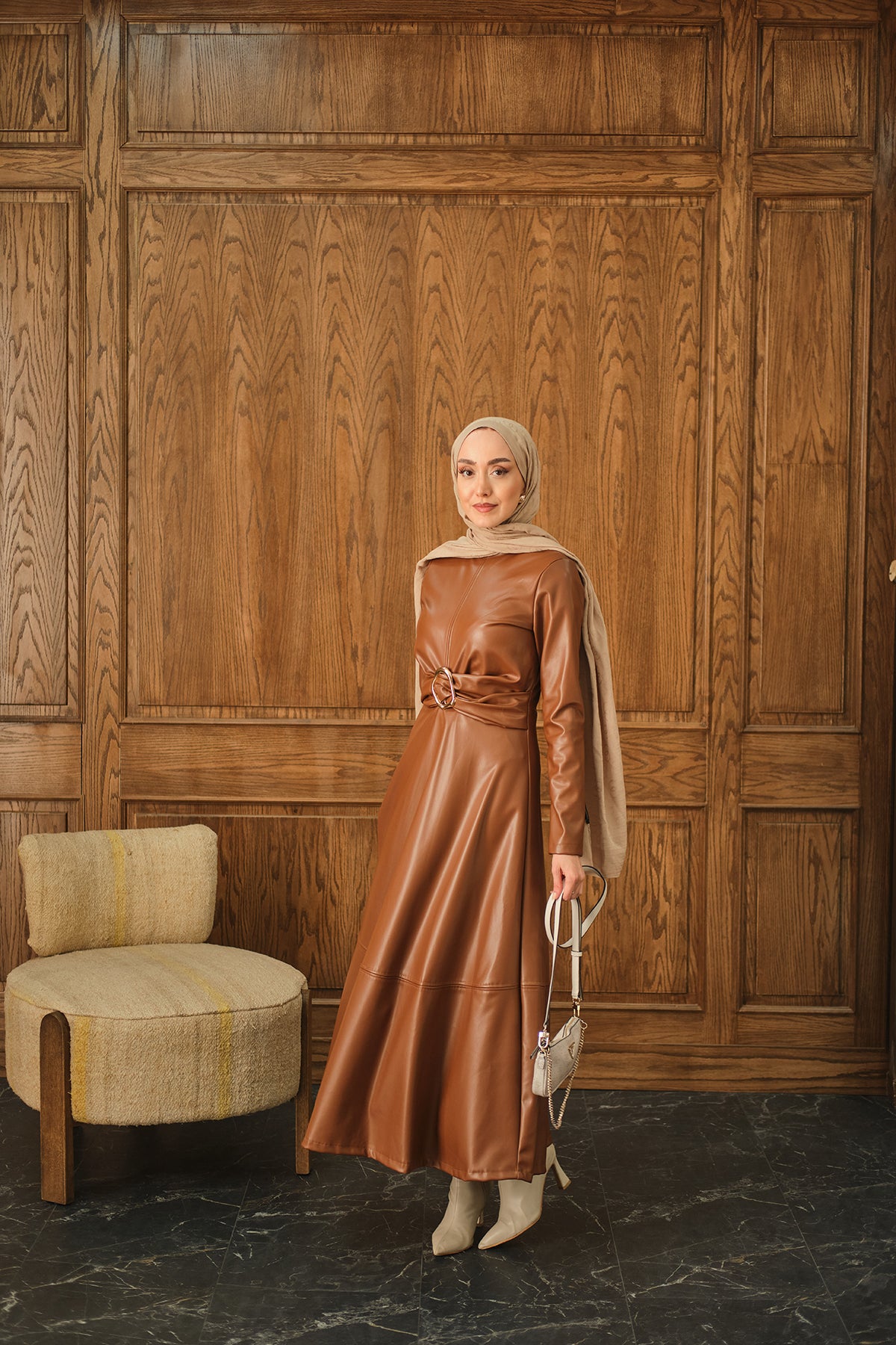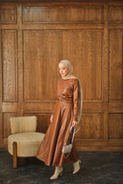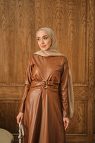 Şardonlu Deri Elbise Taba