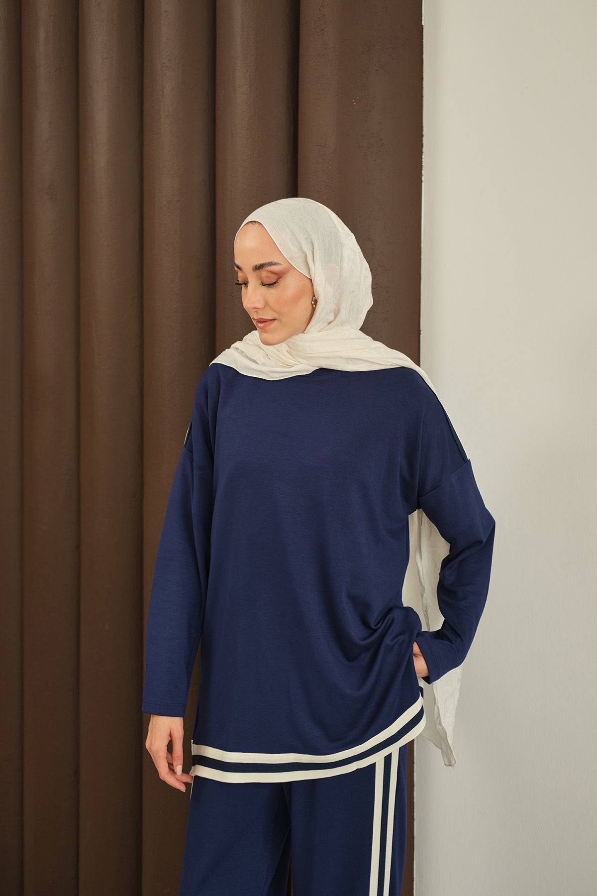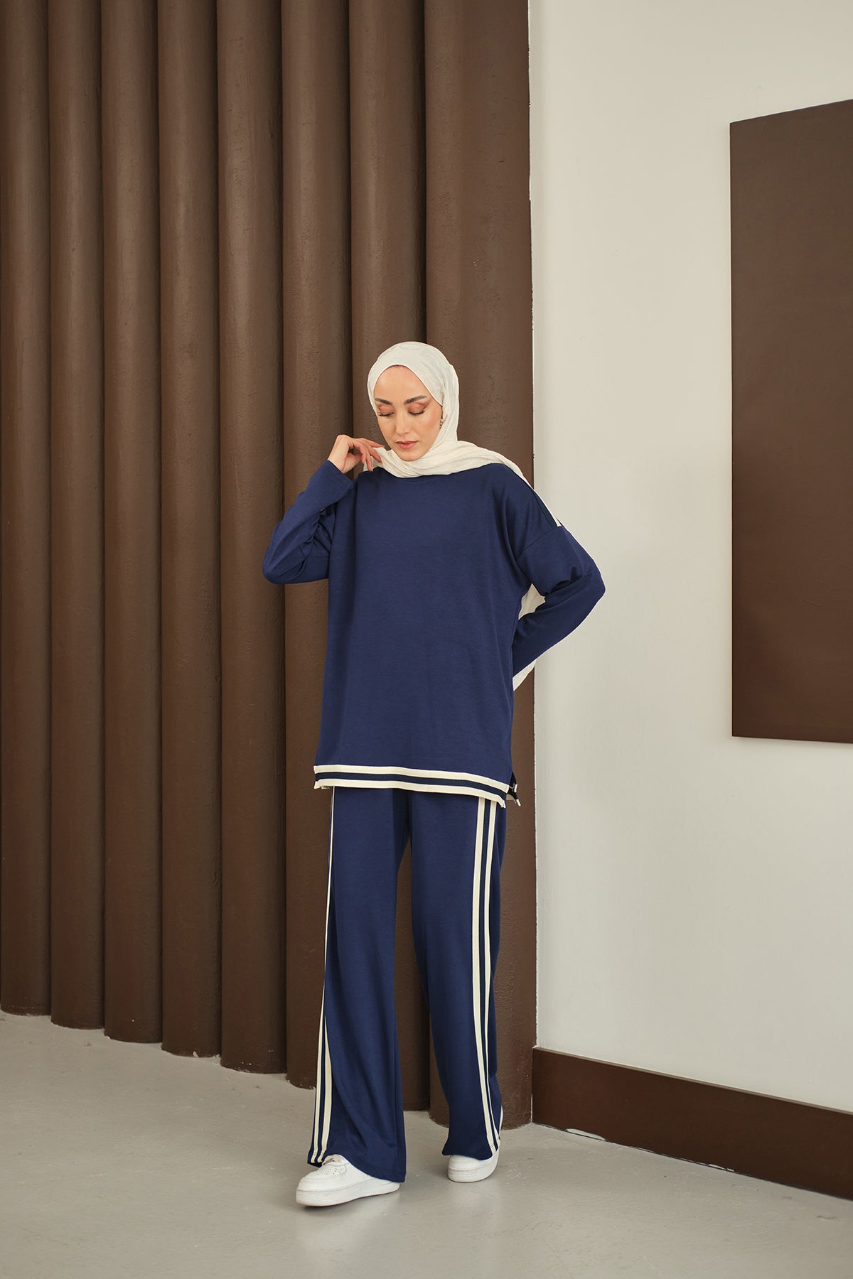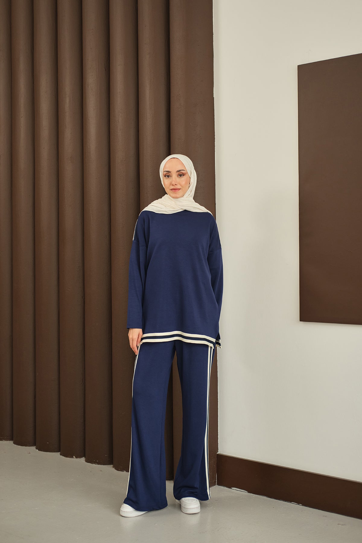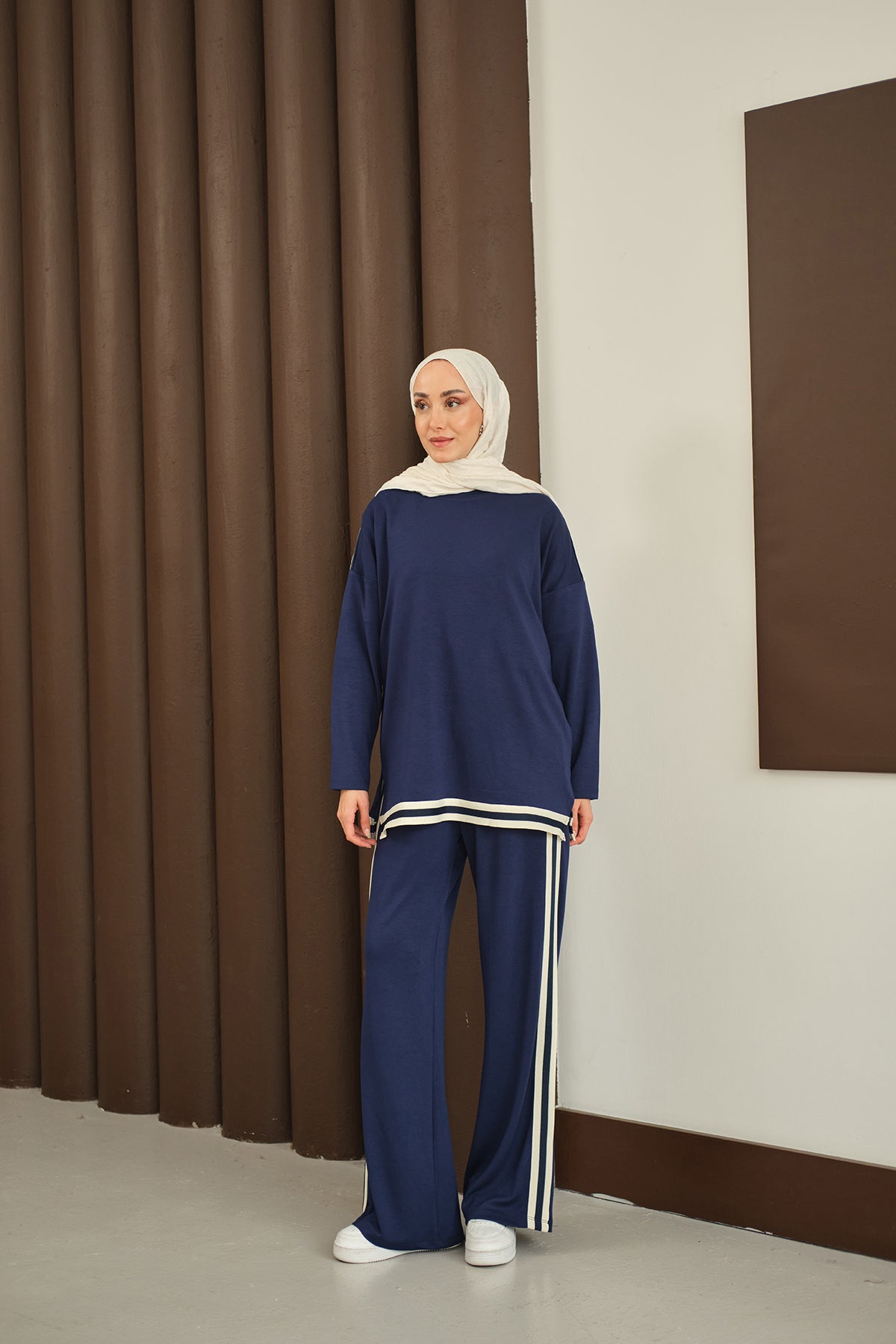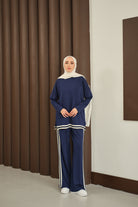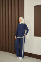 Şeritli İkili Takım Lacivert