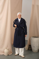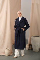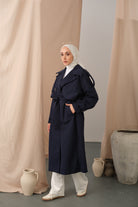 Sleeve Cuff Tie Detail Trench Coat - Navy Blue