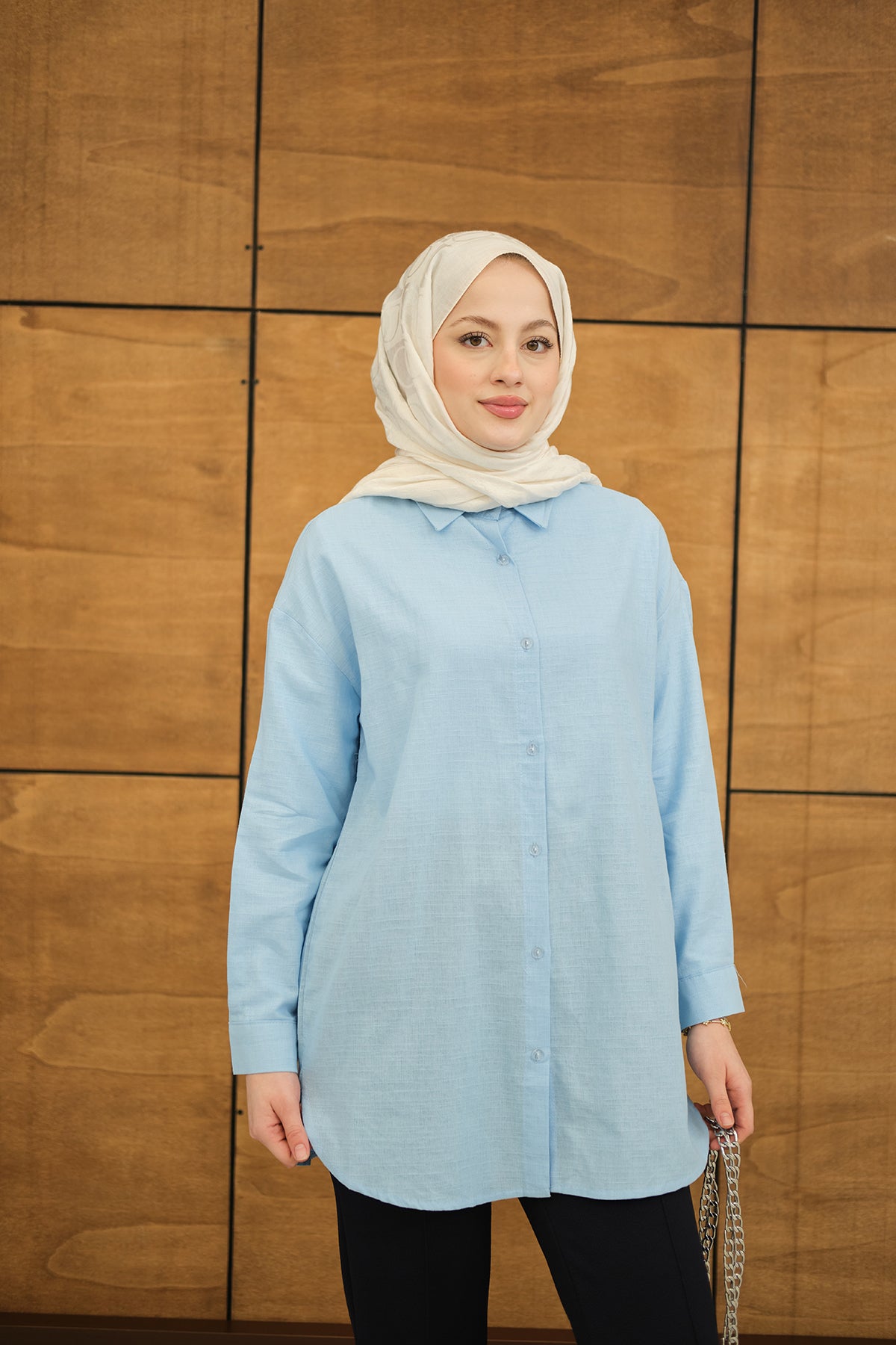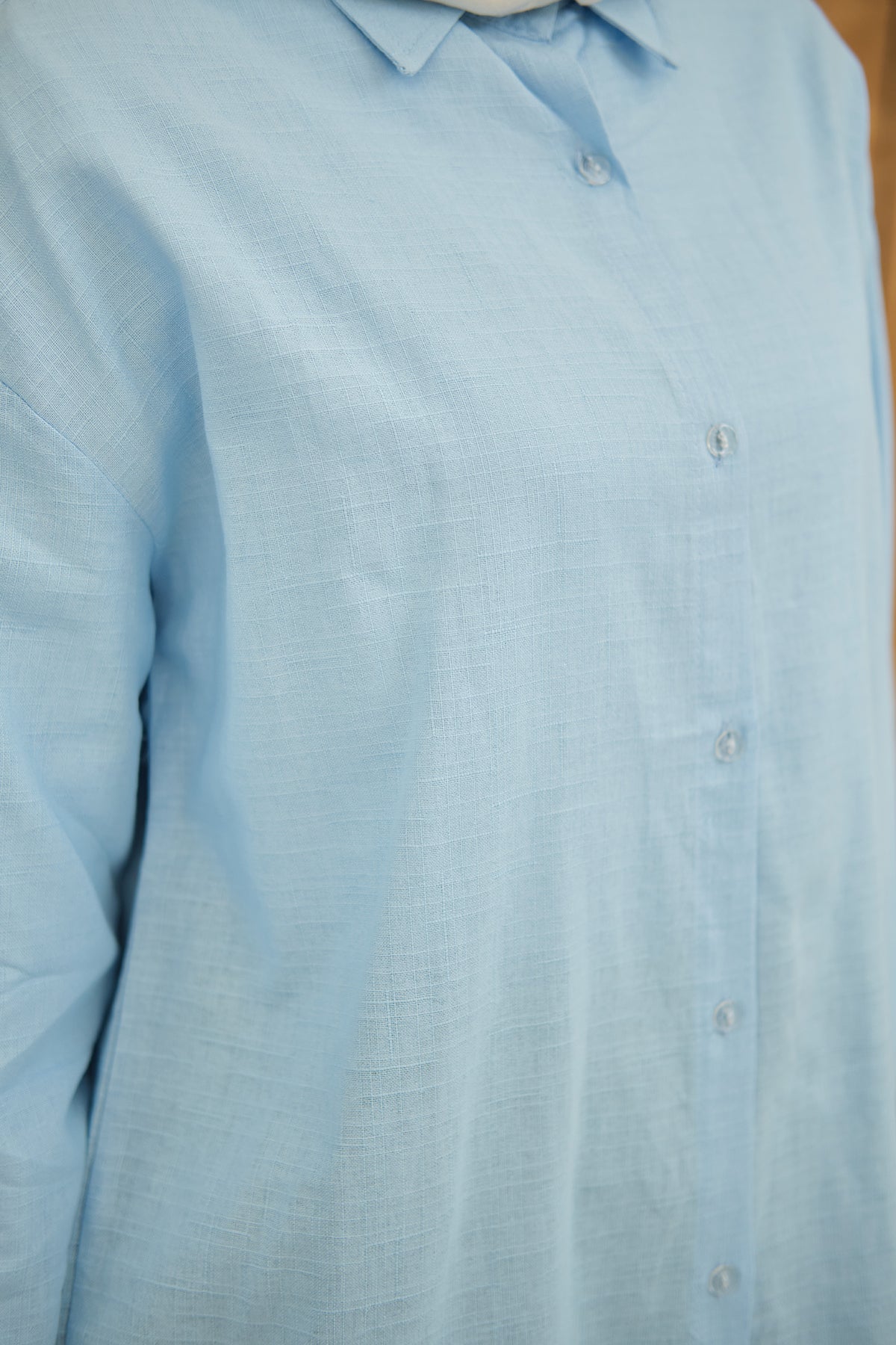 Transparent Button Detail - Basic - Shirt - Baby Blue