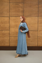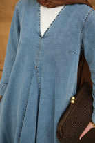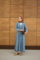V-Neck Detail - Belted - Dress - Ice Blue