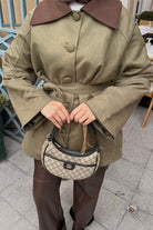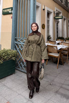 Velvet-Trimmed Panelled Trench Coat – Khaki Green