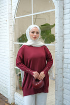 Wrist-Length Tunic with Gold Accessory Details – Burgundy