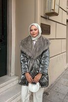 Yaka Kürklü Dikiş Detay Mont Antrasit
