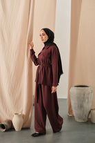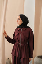 Zipper Detail Waist-Tie Two-Piece Set – Burgundy