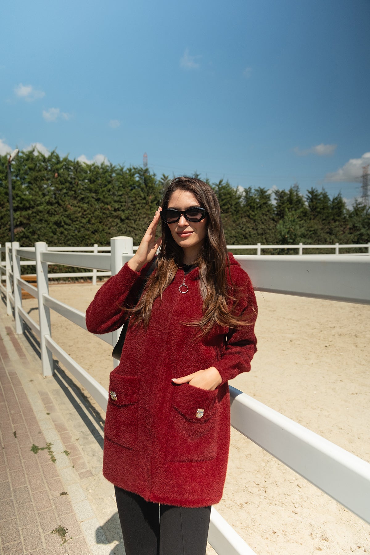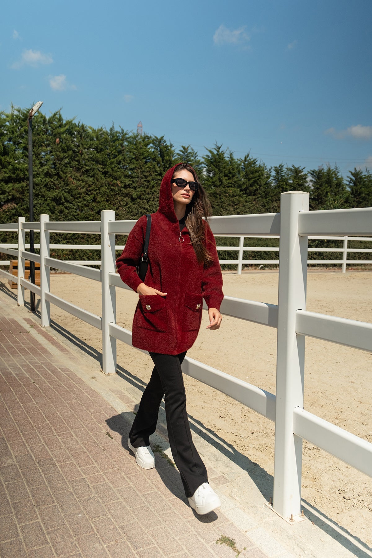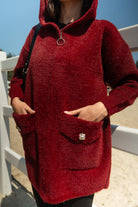 Zippered Knit Cardigan – Burgundy